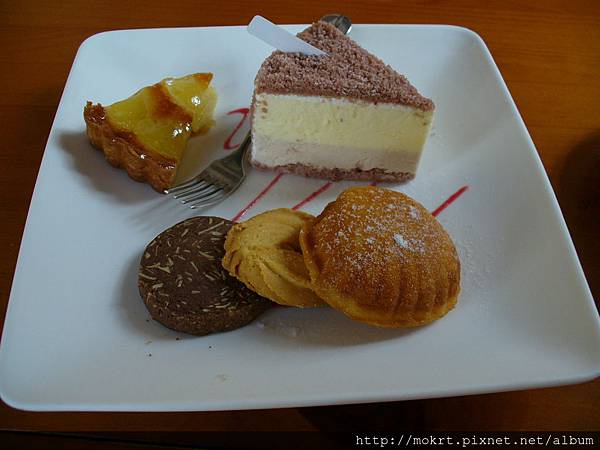 巧克力起司蛋糕比草莓甜說,鳳梨派不錯吃,餅乾就還好。