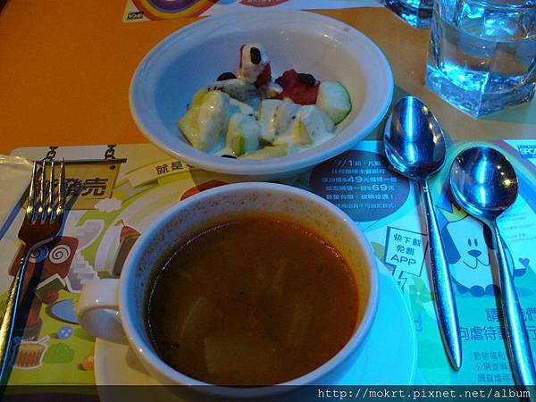 我是點套餐,蕃茄湯很清爽,水果沙拉的醬好好吃>/////<