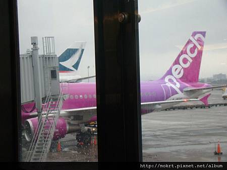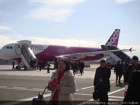 我今天搭的飛機,桃紅色超可愛!這邊有空橋接到機上~