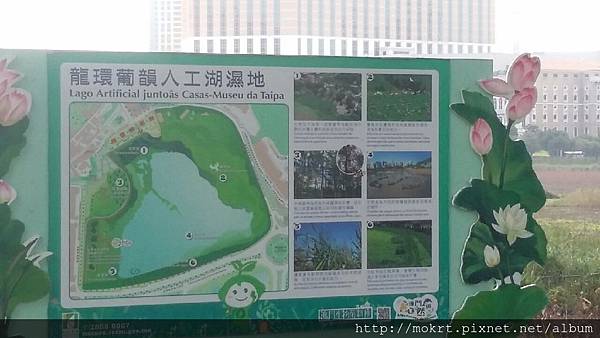 建築物對面是人工濕地
